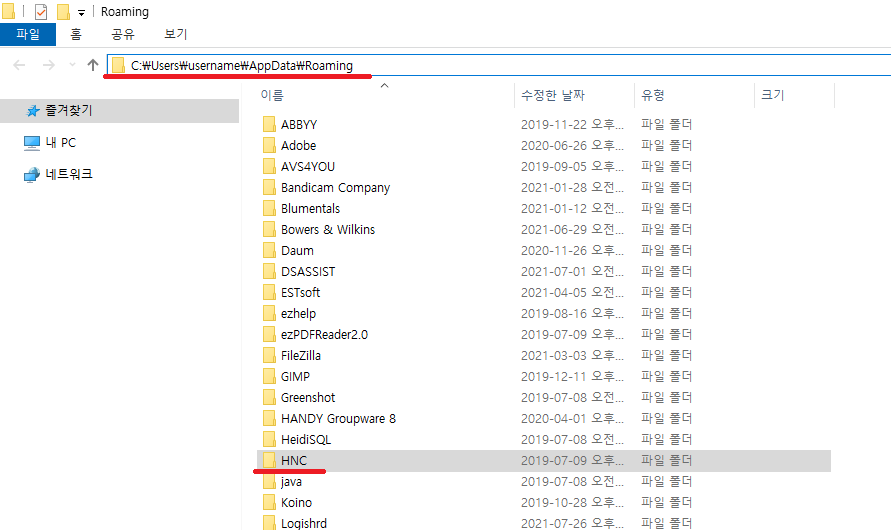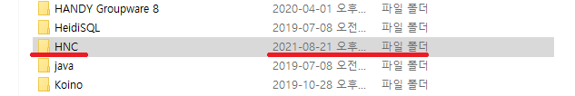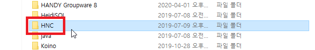 해당 폴더에서 HNC 폴더를 찾아주세요.