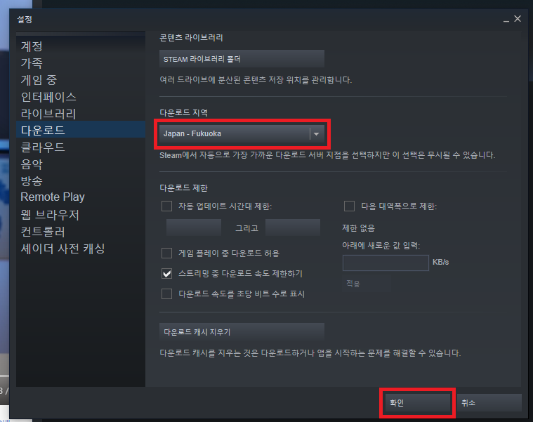 스팀 다운로드 속도 올리기, 스팀 다운로드 서버 국가 변경하기