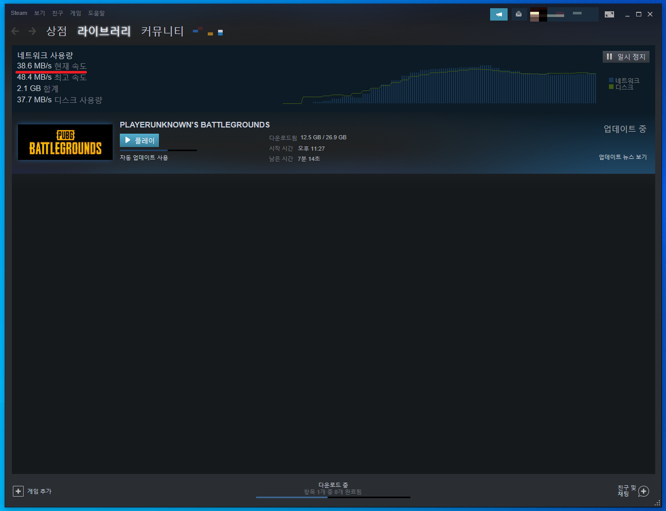 7. Steam이 재시작된 후 다운로드 속도를 체크해줍니다.