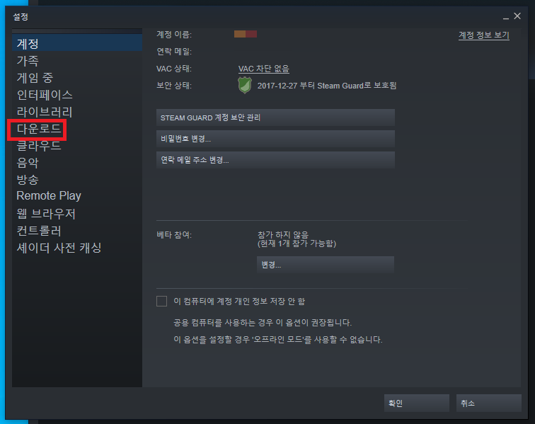 스팀 다운로드 속도 올리기, 스팀 다운로드 서버 국가 변경하기