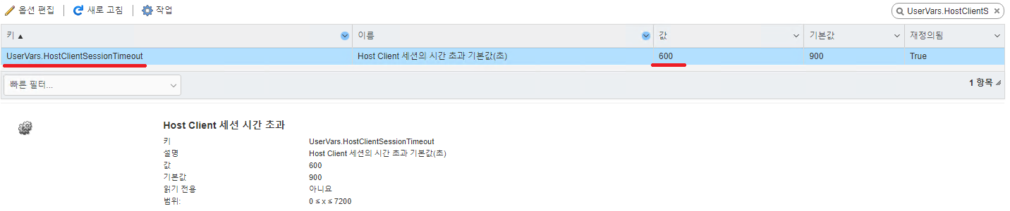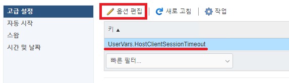 UserVars.HostClientSessionTimout 항목을 찾으셨다면 해당 항목 선택 후 옵션 편집을 눌러줍시다.