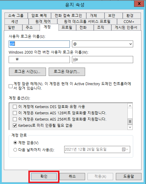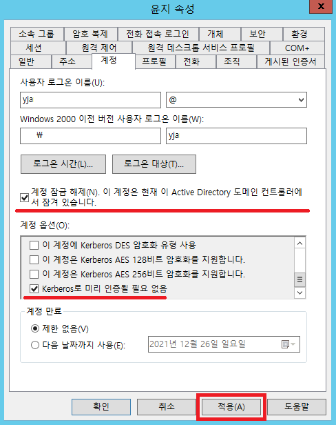 AD 특정 사용자 Kerberos로 미리 인증 받지 않도록 설정하기