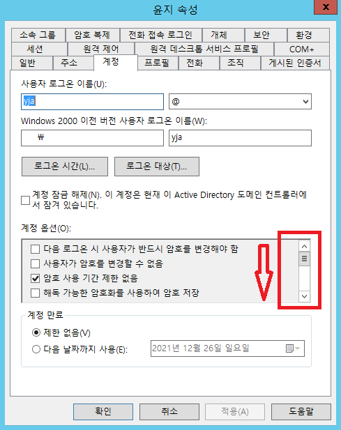 계정 잠금 해제 체크박스도 체크해줍시다.