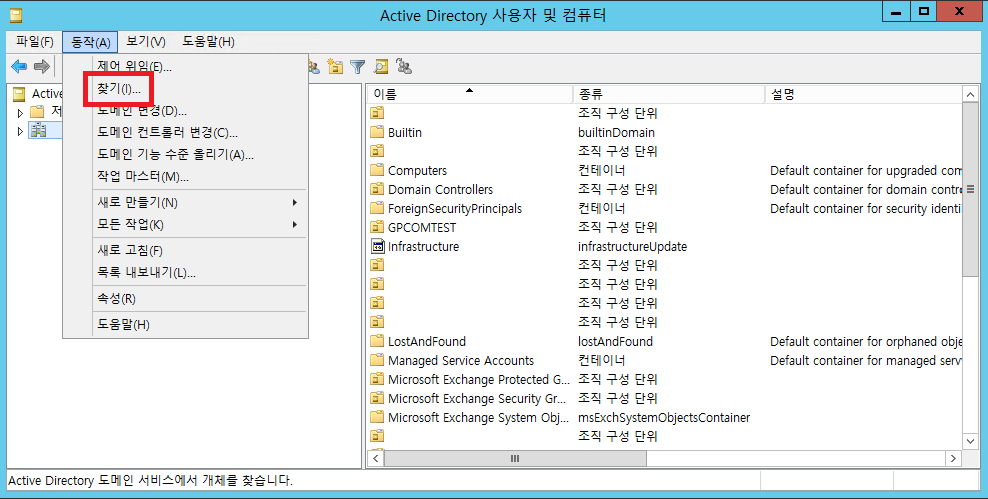 2. dsa.msc로 들어오면 위와 같이 뜨실텐데요
