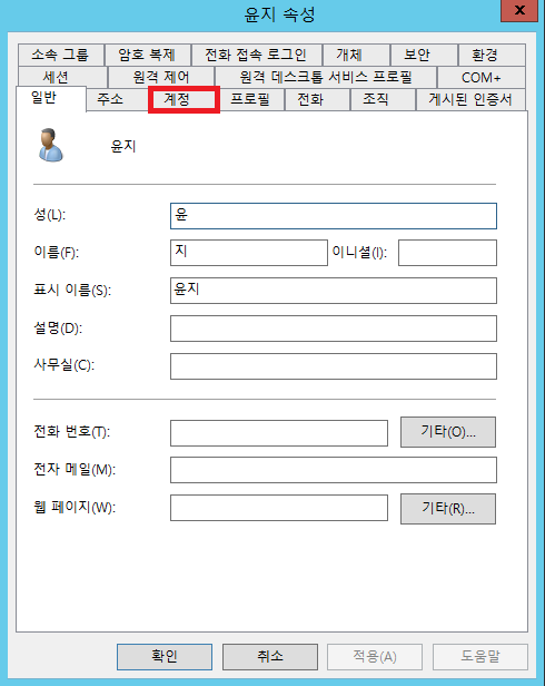 계정 잠금 해제 체크박스도 체크해줍시다.