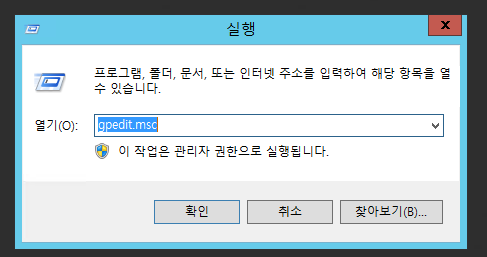 7. 윈도우키 + R하면 실행창이 뜨고 거기에 gpedit.msc를 열어줍시다.