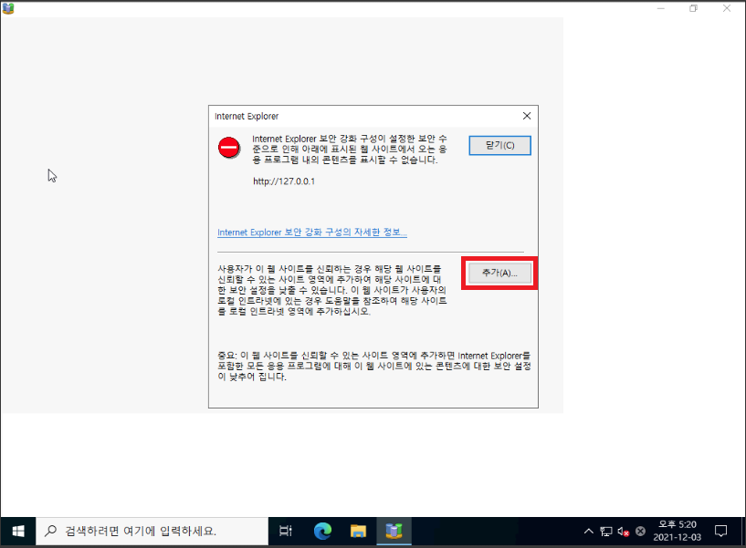 http://127.0.0.1 가 추가되었다면 닫기를 눌러주세요.