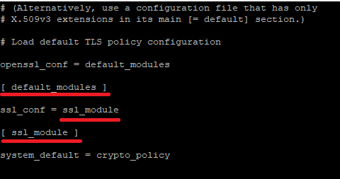 그 아래에 MinProtocol = TLSv1 항목을 추가해줍시다. ( 혹시 다른 항목이 있으면 그 아래에 )