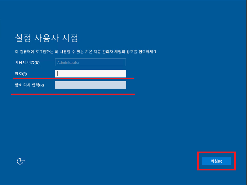 초기 비밀번호 설정하시고 마침을 눌러주세요.