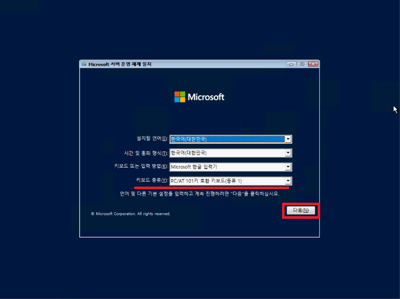 키보드 종류는 101키라면 101키를 103키라면 103키를 선택하시면 되는데