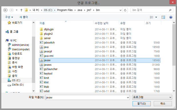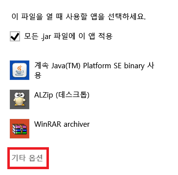 JAR파일에 자바를 연결 프로그램으로 설정하기