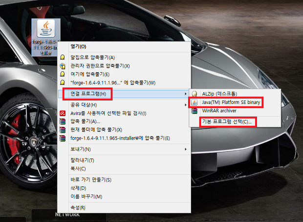 JAR파일에 자바를 연결 프로그램으로 설정하기