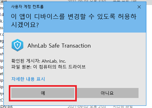 만약 안 보이시면 트레이 아이콘에 AhnLab Safe Transaction 프로그램이 실행 중일 겁니다.