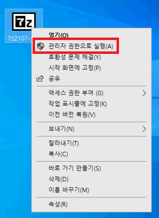 여기까지 하셨다면 7-Zip을 사용할 수 있게 프로그램이 설치되었습니다.