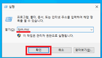9. tpm.msc 를 입력하고 확인 버튼을 눌러줍시다.