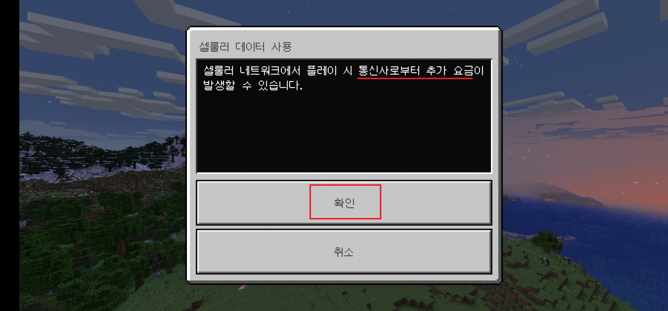 무제한 데이터가 아니라면 셀룰러 데이터로 모바일 마인크래프트를 하시면 안 됩니다.
