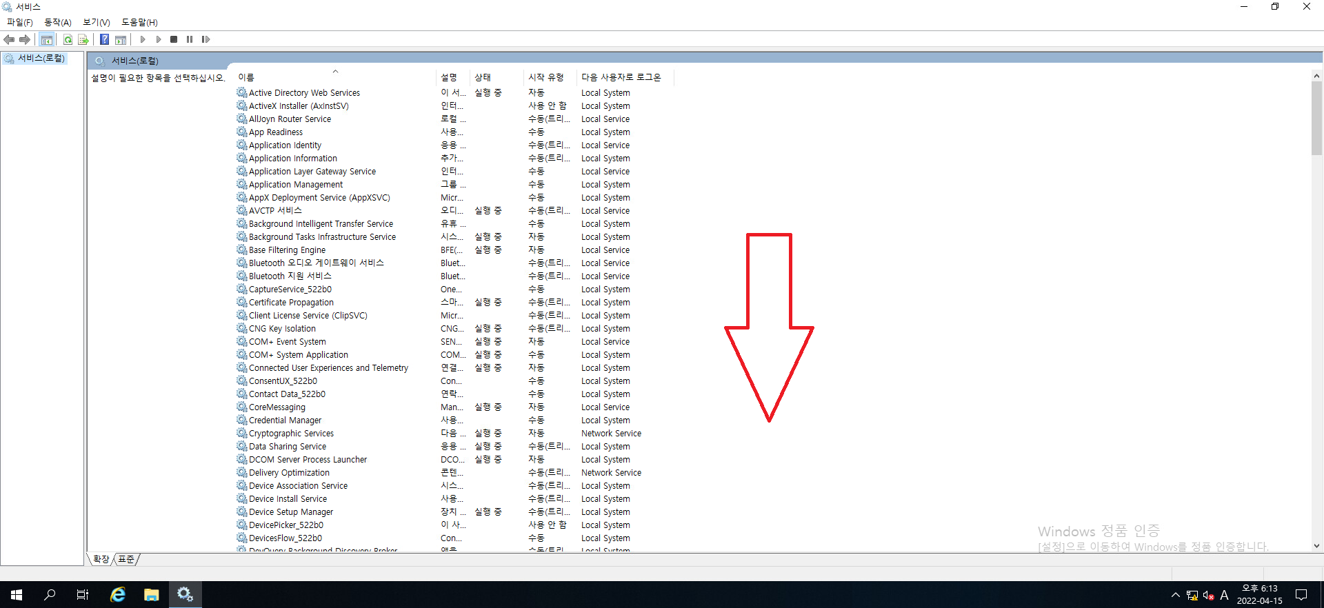29. 서비스 목록이 뜨시면 아래로 내려가서 VMWARE Horizon View 라는 서비스 리스트를 찾아줍시다.