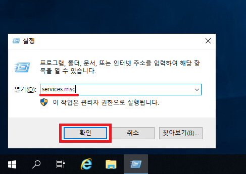 28. 실행창이 뜨시면 services.msc 를 입력하고 확인을 눌러줍시다.