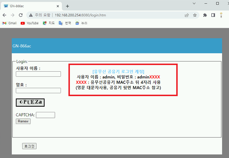 GN-866ac 모델 포트포워딩을 해보자