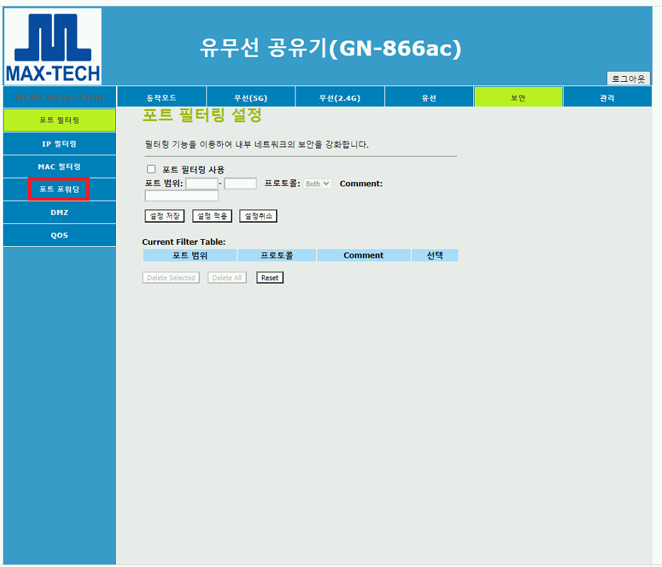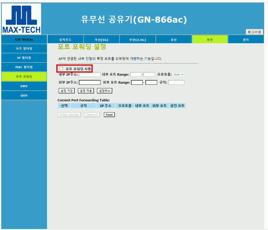 MAX-TECH GN-866ac 공유기 포트포워딩 하는 법