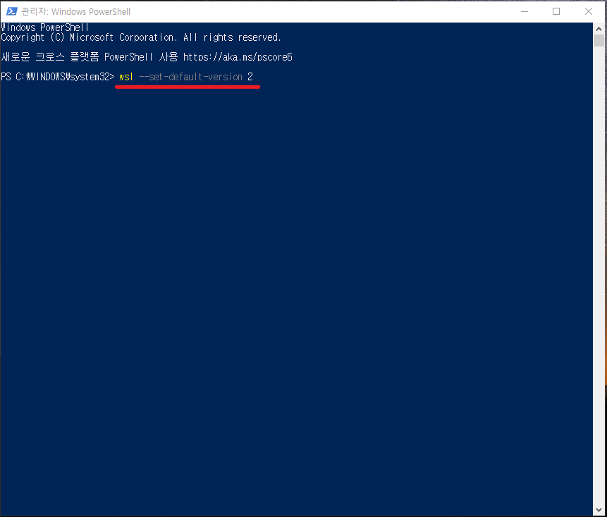 wsl 구성 시 wsl2 로 구성되도록 기본설정을 변경해줍시다.