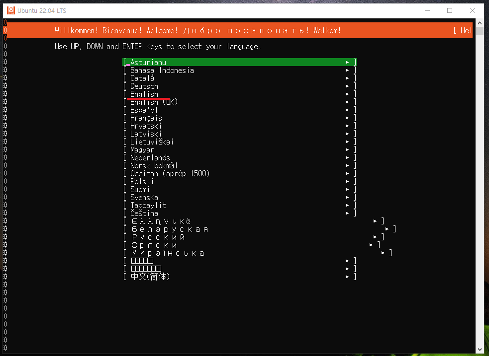 34. 방향키로 English 선택 후 엔터키