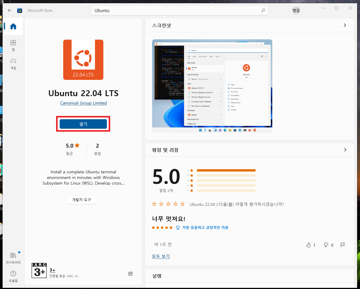 26. ubuntu를 입력하고 최상단 검색 아이콘이 붙어있는것을 클릭해줍시다.