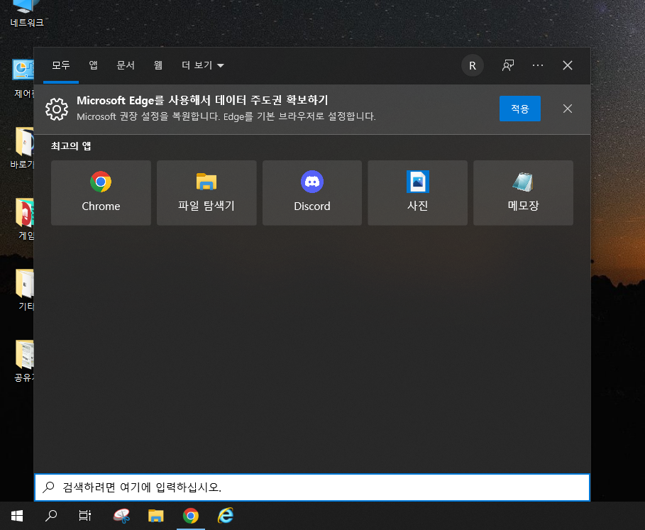 윈도우 키 + S키를 눌러 검색창을 띄워주시고