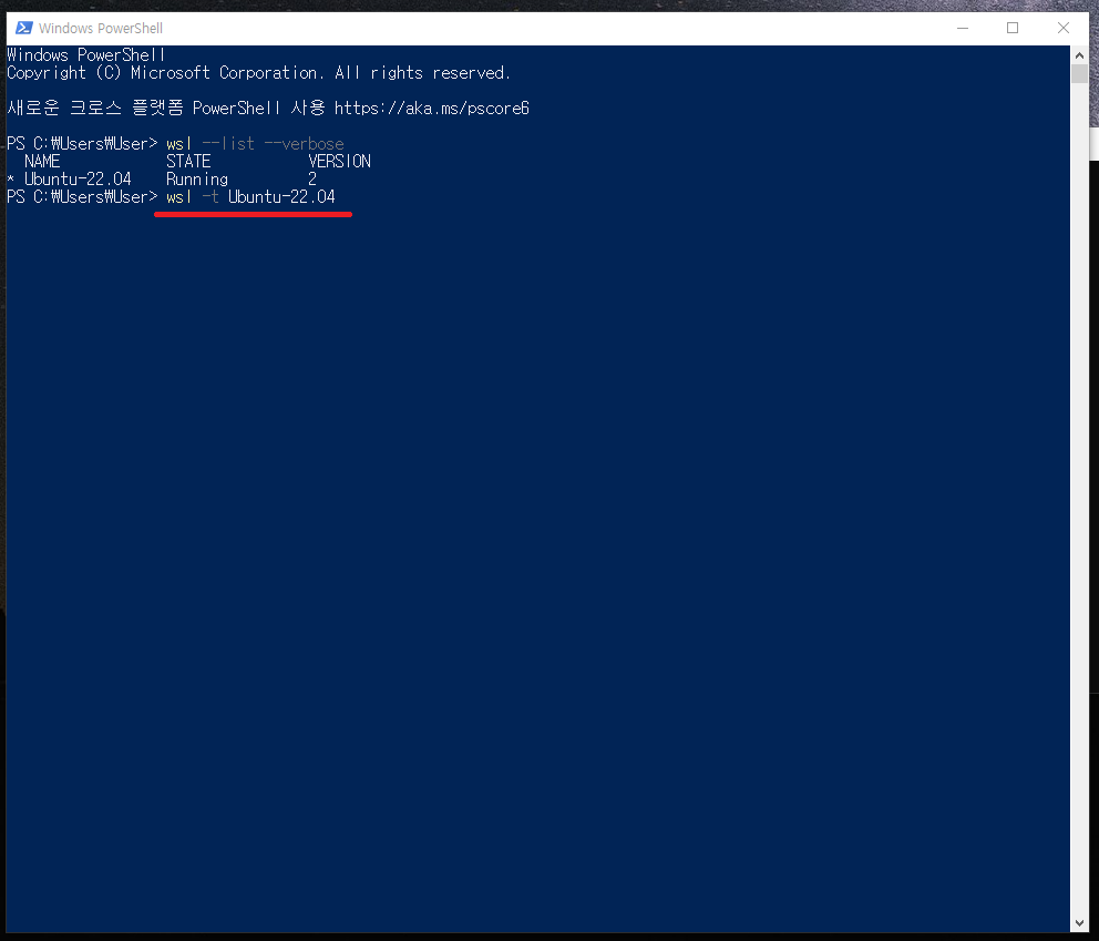 예시) wsl -t Ubuntu-22.04