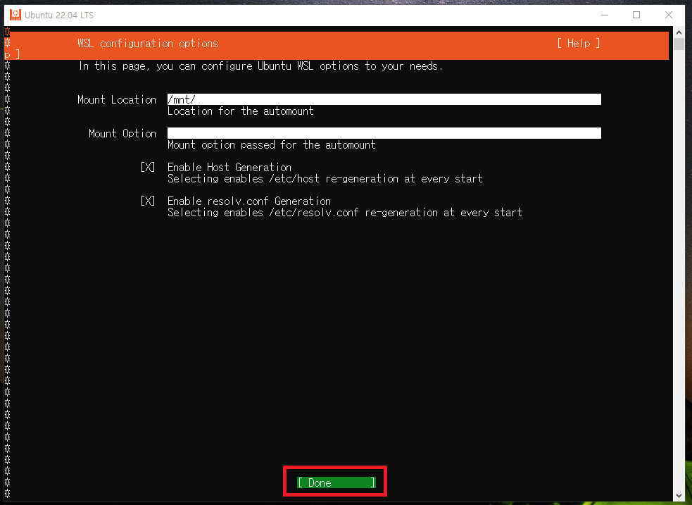 방향키로 Done으로 이동하여 엔터키를 눌러주세요.
