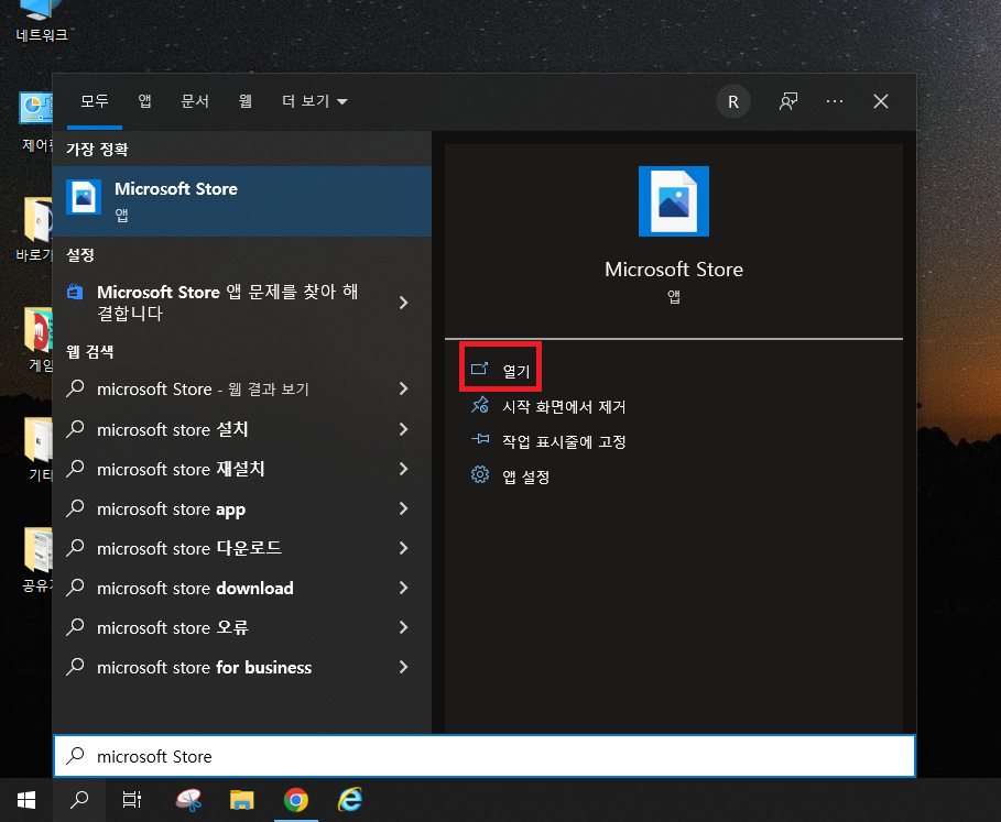 23. 검색창을 띄워 microsoft store를 검색해서 마소 스토어를 켜줍시다.