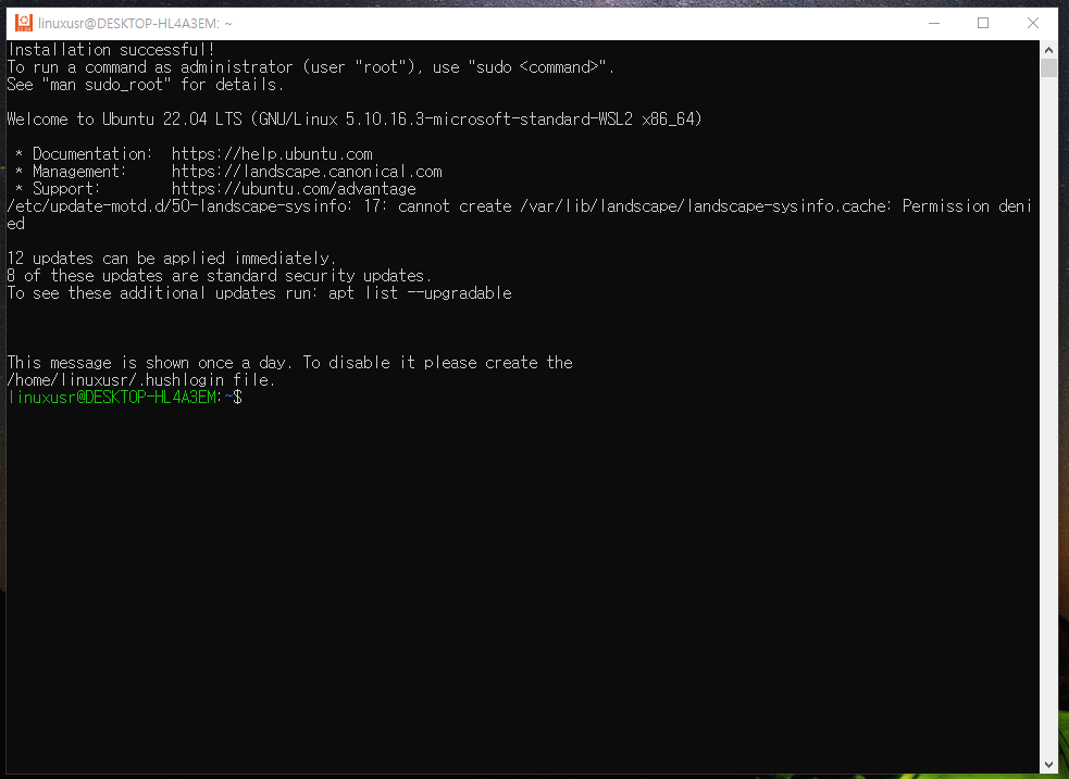 53. 정상적으로 WSL 우분투가 실행되었습니다.