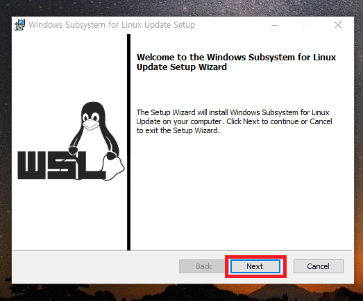 18. Windows Subsystem for Linux Update Setup을 실행시키면 위와 같이 뜹니다.