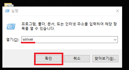2. winver 을 입력하고 엔터키를 눌러줍시다.