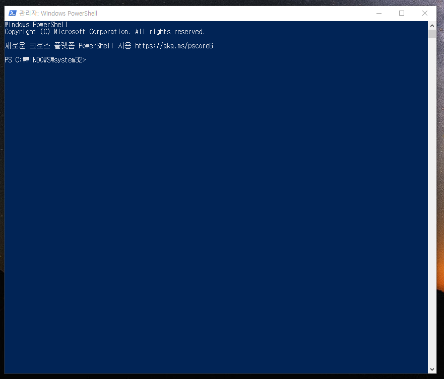 7. 위와 같이 파워쉘이 관리자: Windows PowerShell으로 켜졌다면 관리자 권한으로 정상적으로 실행된겁니다.