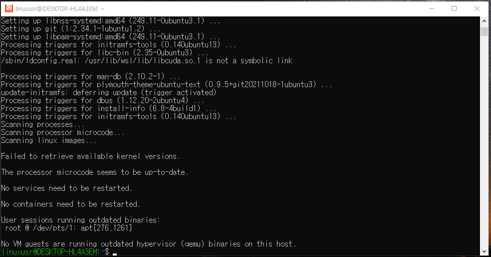 또한 WSL로 구성된 우분투는 실제 우분투와는 기능적으로 차이가 있으므로