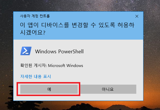6. 사용자 계정 컨트롤이 뜨시면 예를 눌러주세요.