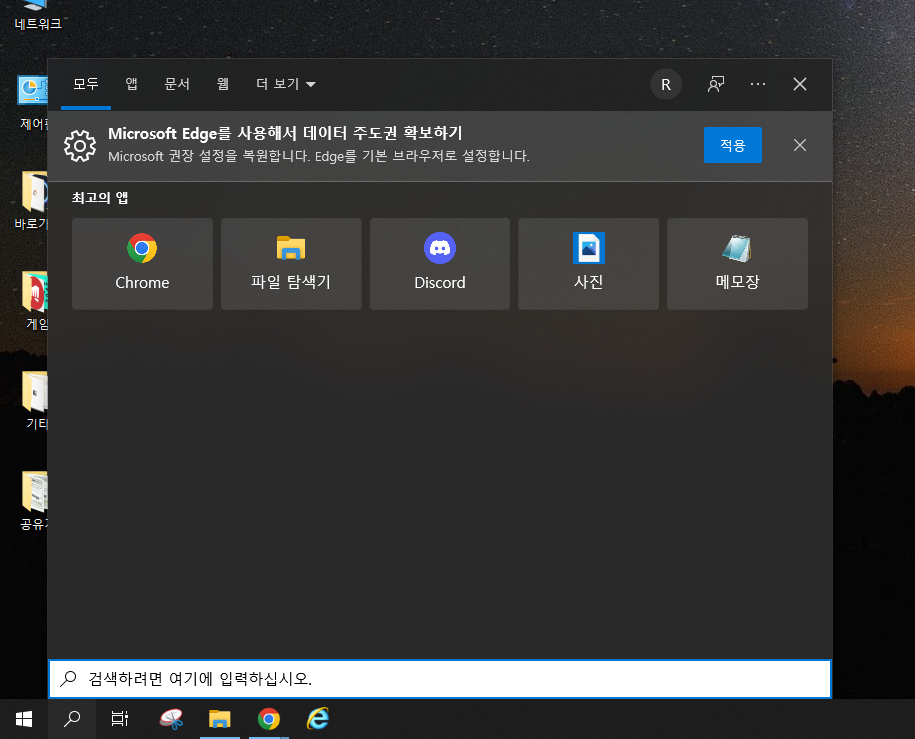 윈도우 키 + S키를 눌러 검색창을 띄워주시고