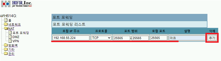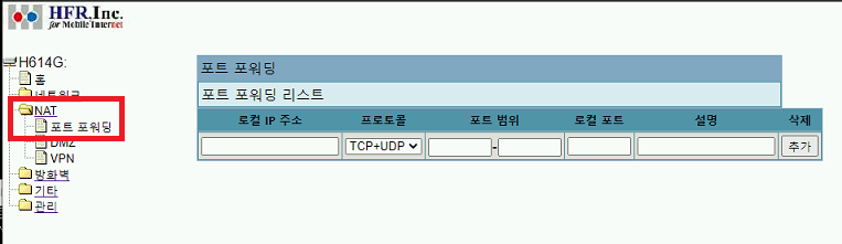 SKB HFR H614G 이더넷 장비 포트포워딩 하는 법