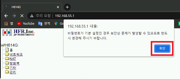 6. 인터넷 주소창에 http://192.168.55.1 을 입력하고 접속해줍시다.