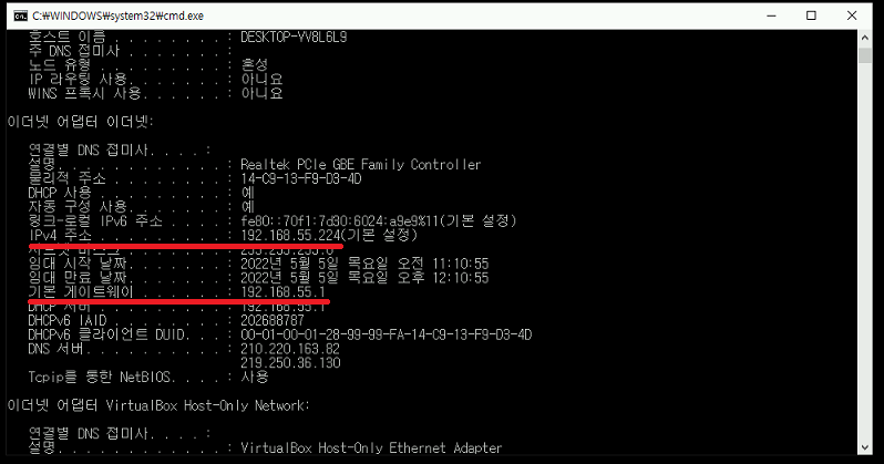 5. 명령을 실행하면 위와 같이 정보가 나옵니다.