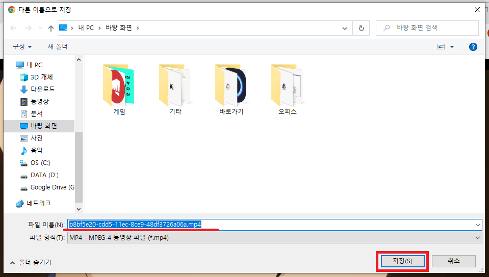아래 파일형식이 이미 .mp4로 설정되어있기 때문에