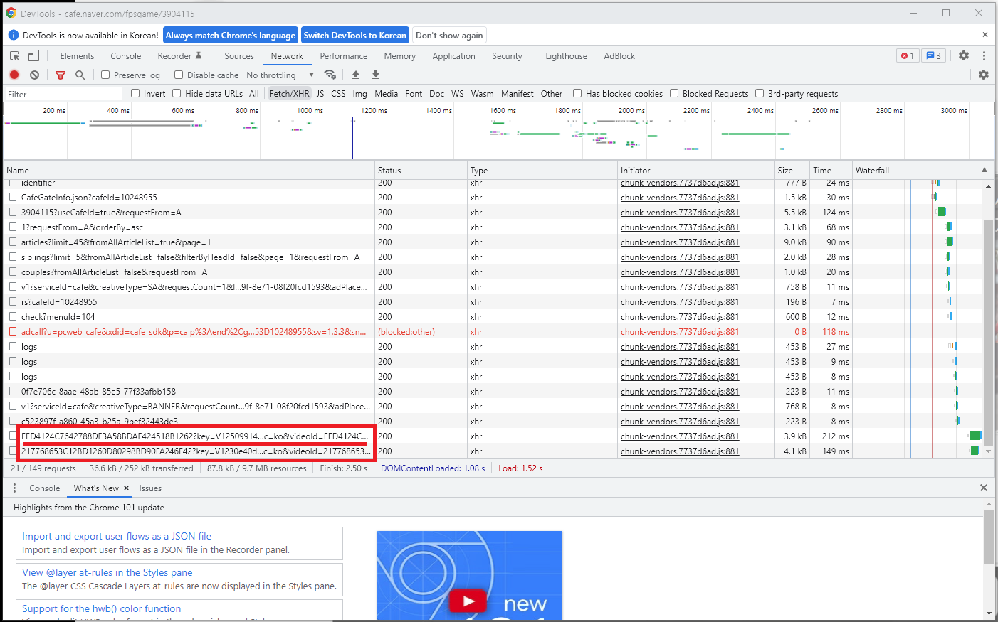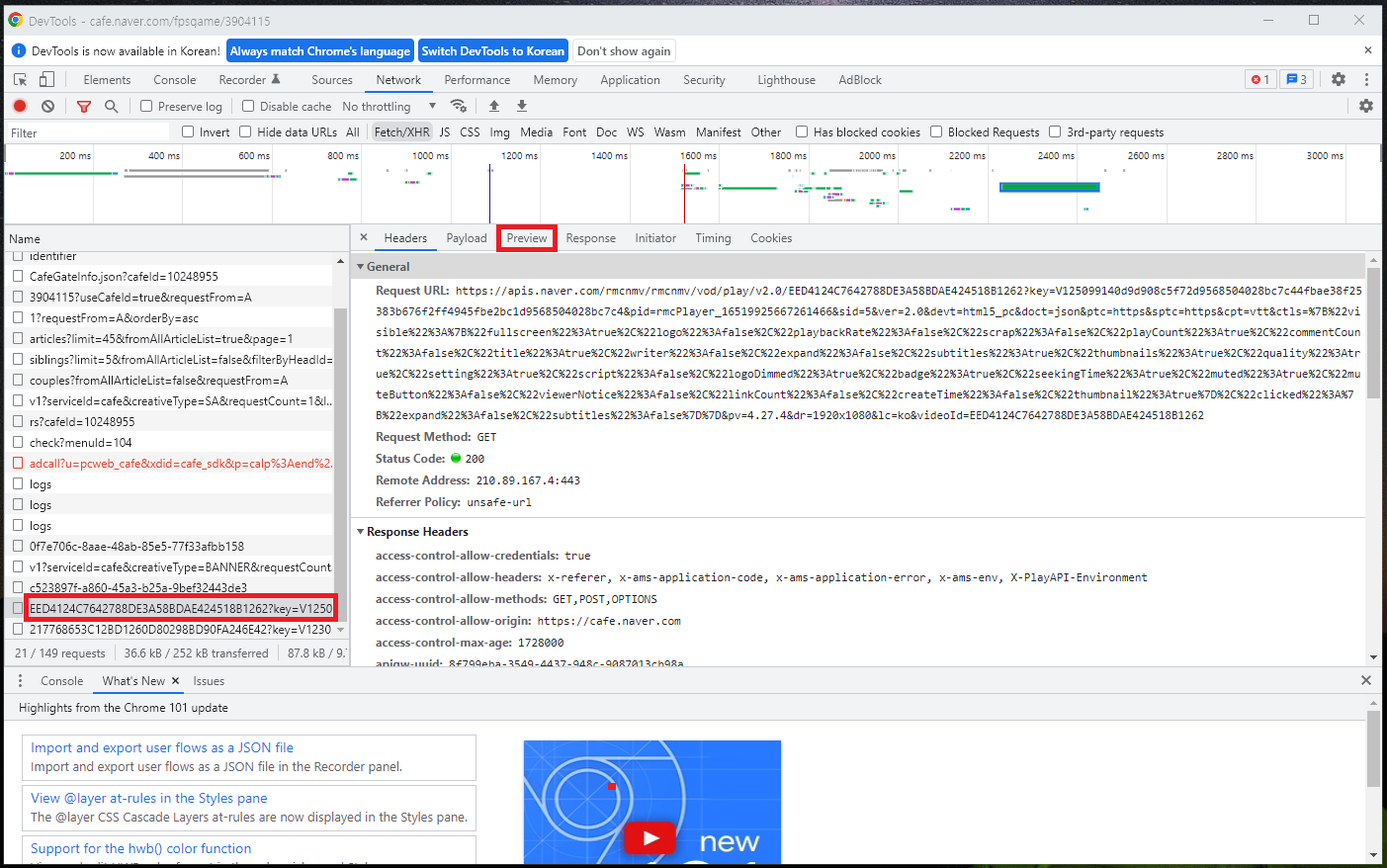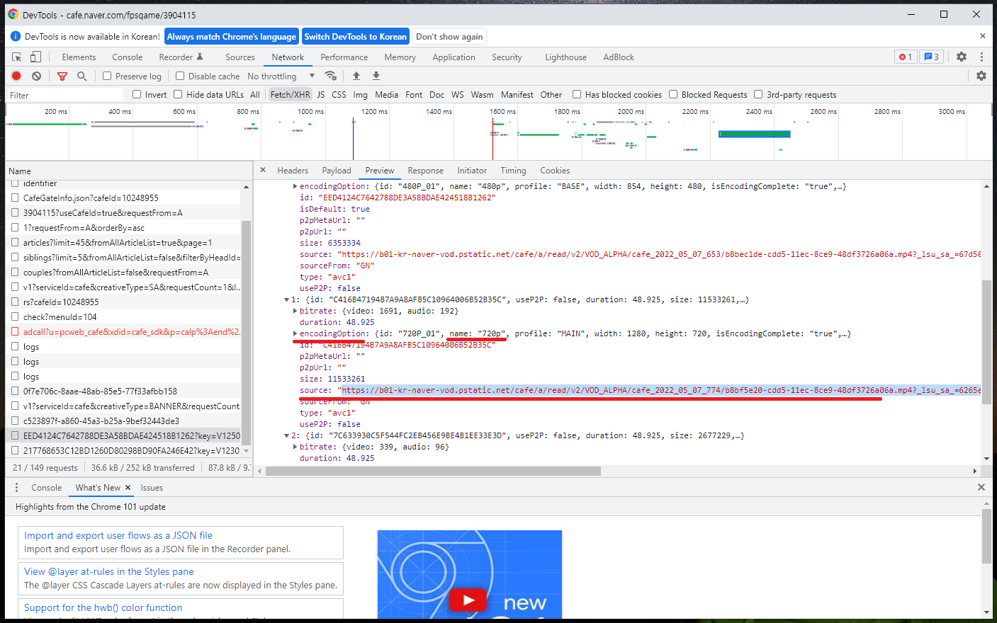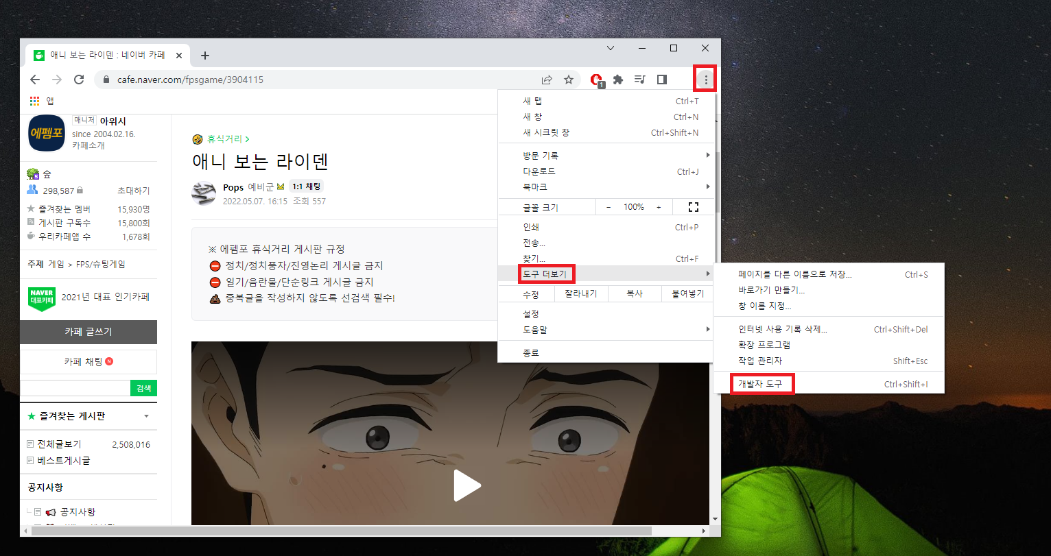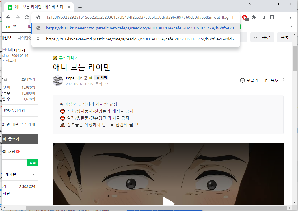 크롬 브라우저로 네이버 카페에 올라온 동영상 다운로드 받아보자