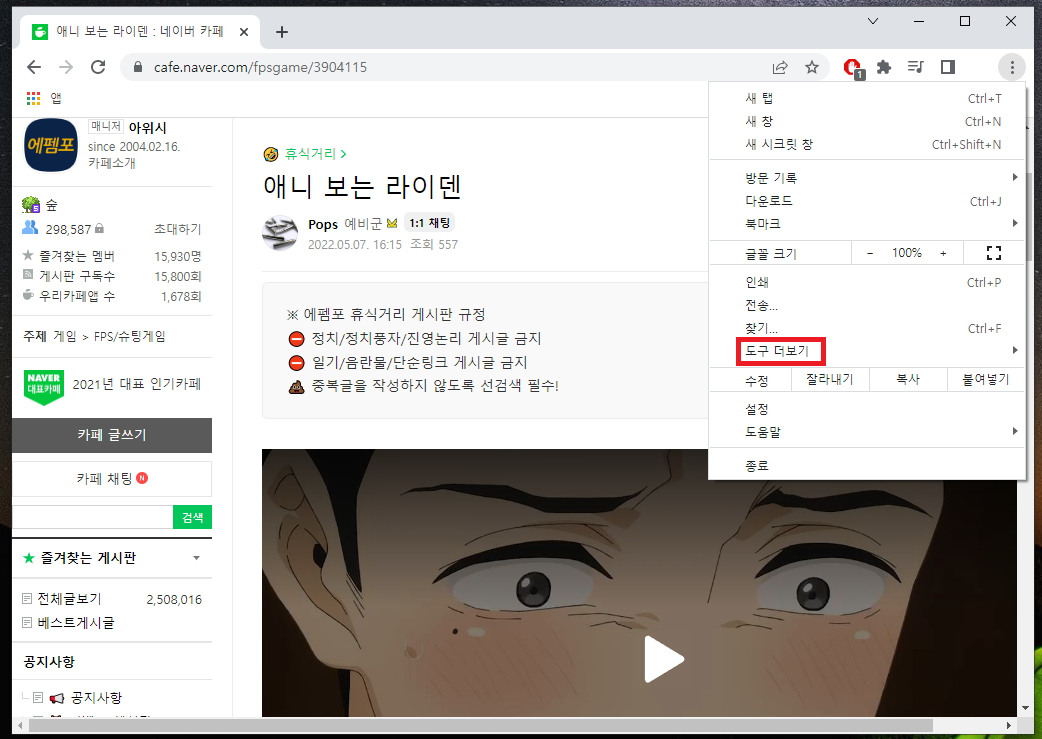 1. 예시로 네이버 카페 눈팅을 하다보니 위 영상을 다운 받고 싶을 때가 생깁니다.