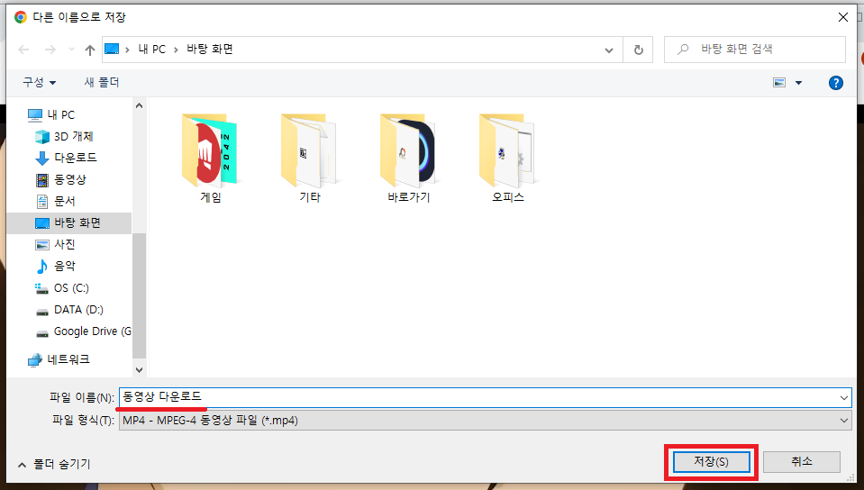 아래 파일형식이 이미 .mp4로 설정되어있기 때문에