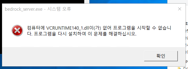 컴퓨터에 VCRUNTIME140_1.dll이(가) 없어 프로그램을 시작할 수 없습니다. 프로그램을 다시 설치하여 이 문제를 해결하십시오.