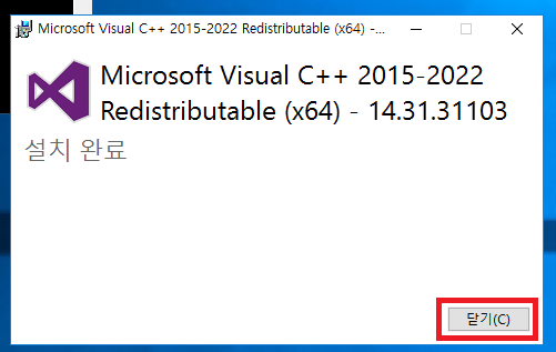 이 에러가 발생하는 이유는 컴퓨터에 Visual C++ 재배포 가능 패키지 Microsoft C 및 C++(MSVC) 런타임 라이브러리가 설치되어 있지 않아서 그렇습니다.