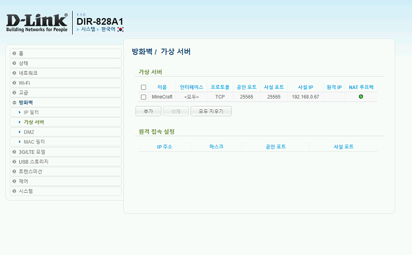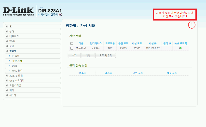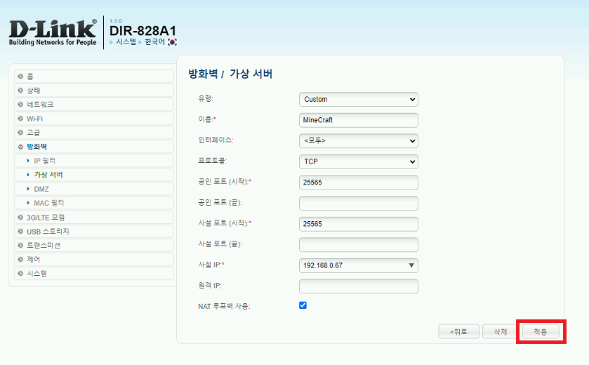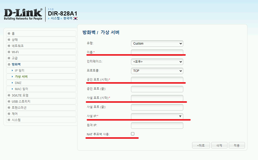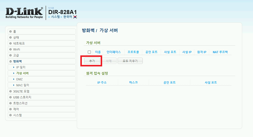 D-Link DIR-828A1 유무선 공유기 포트포워딩 하는법