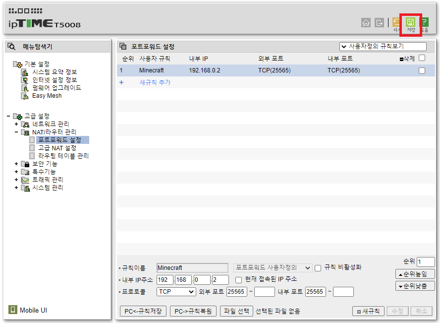 IPTIME T5008 유선 공유기 포트포워딩을 해보자