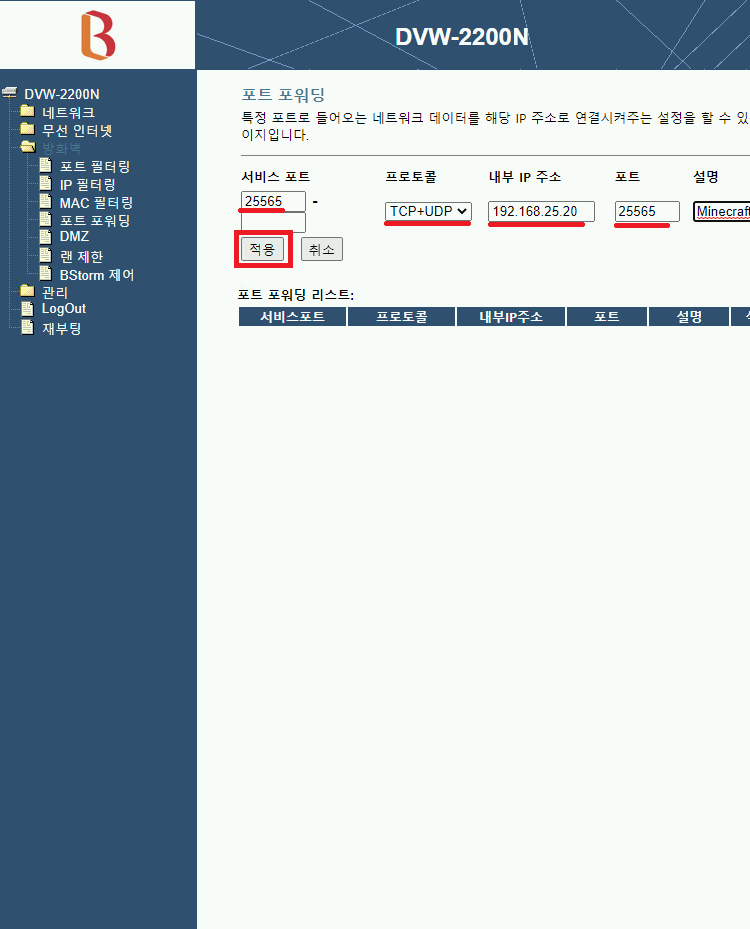 DVW2200N 유무선 공유기를 포트포워딩 해보자